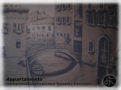 Росписью стен, декоративное оформление любых помещений,работа кистями,аэрографом,любыми красками в том числе и флюоресцентными(светящиеся при ультрафиолетовом свете) декоративными штукатурками.картины,портреты,декор.роспись кухонных фасадов.