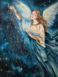 Очень красивая картина с сияющим Ангелом и светящейся россыпью звезд...