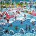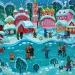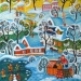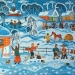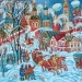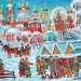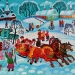 Зимний рождественский вечер в русской деревне. Тройка мчится по улице. Дети играют в хоккей. Баба идет за водой. Народ веселится. Праздник Рождества