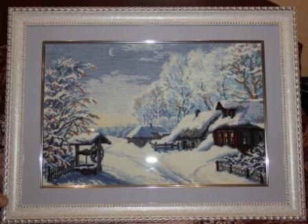 Вышитая картина "Русская зима" в рамке под стеклом. Размер готовой работы с рамкой 51*38 см.