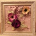 Рыжые орхидеи, зеленые листочки, желто-зеленый спиральный рисунок на белом грунтованном фоне, золотистая рамка