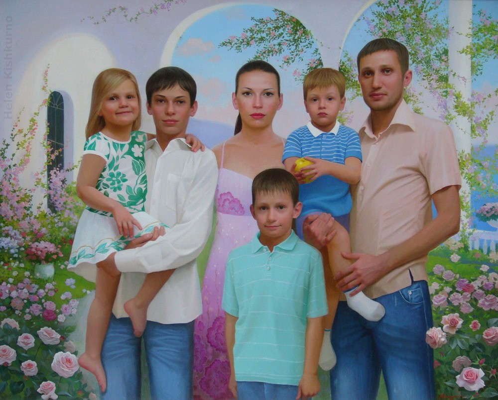 Портрет выполнен на заказ. Чтобы заказать семейный портрет, пожалуйста, свяжитесь с Еленой Кишкурно.