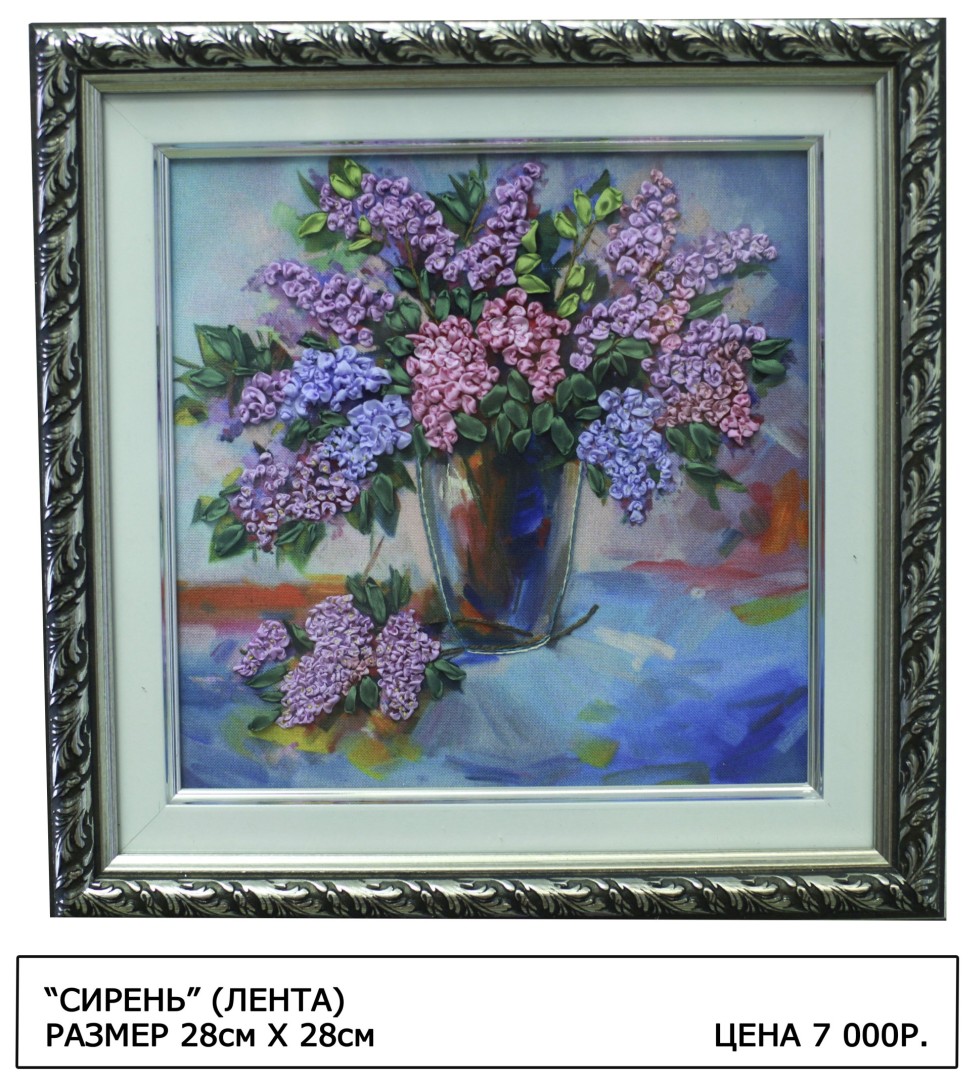 Объемная вышивка лентой. Антибликовое стекло, багет.