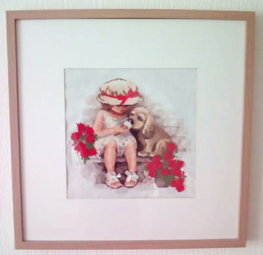 Виды стежков: счетный крест в 2 нити (есть комбинированые цвета), полукрест в 1 и 2 нити, бэкстич, петельный шов вприкреп, французские узелки из лент с 1 обвитием.