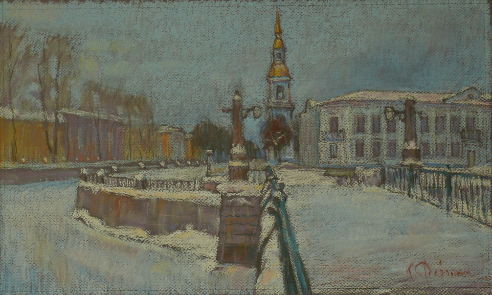 снег санкт-петербург соборы никольский дома пастель пейзажи живопись