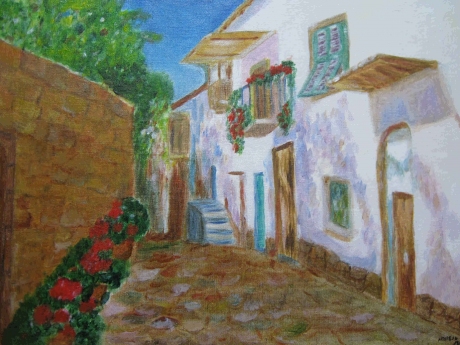 На создание картины меня вдохновили узкие улочки маленьких итальянских городков. Картина наполнена солнечным светом и энергией. Стиль импрессионизма очень подходит для изображения красочной Италии!