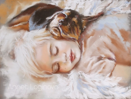 Работа выполнена пастелью на французской пастельной бумаге с бархатной фактурой.