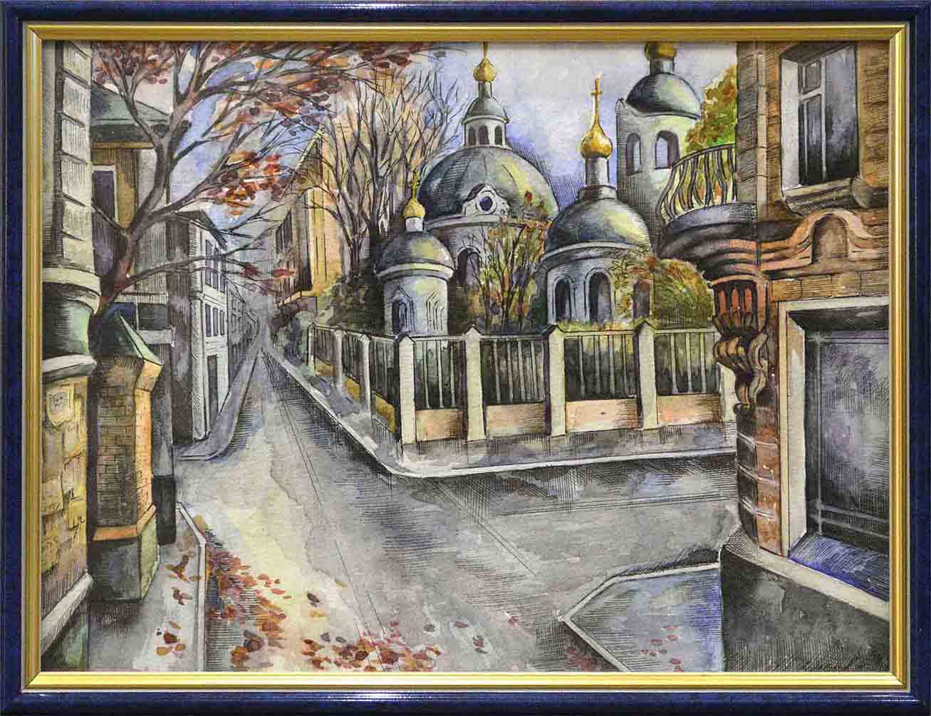 #пейзаж#живопись #картина #art #акварель #художество #пейзаж#городскойпейзаж#архитектура#дома#храм#осень#улица