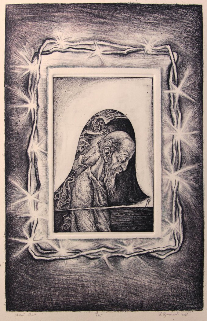 9) Святой Антоний. Офорт (C3). Литография (L1). Размер оттиска: 35х23 см. Размер бумаги: 39x27 см