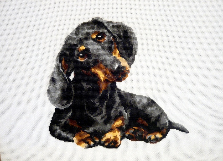 Милая и трогательная такса не оставит никого равнодушным. Это чудо добавит теплоты в ваш дом. Всего 11 цветов нитей шерсть/акрил делают изображение таксы очень реалистичным. Работа вышита в две нити что придает изображению объем. Собака совсем как живая. Она отлично будет смотреться как на стене в рамке так и на наволочке подушки.