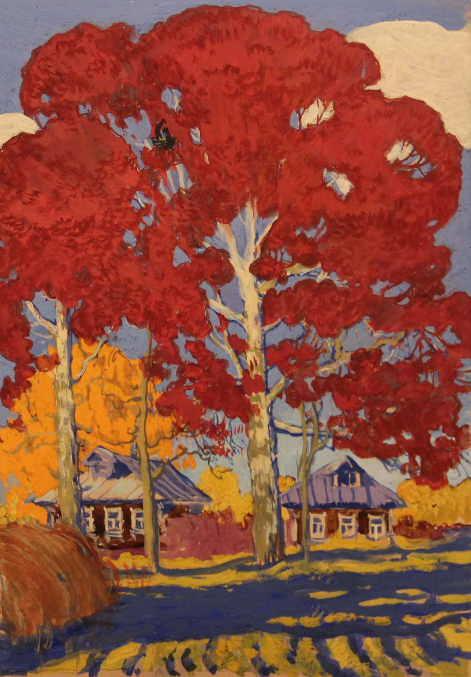 графика # пейзаж #деревья #гуашь #животные#