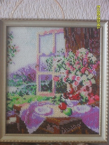 Работа вышита бисером по канве, более 20 цветов, оформлена без стекла.