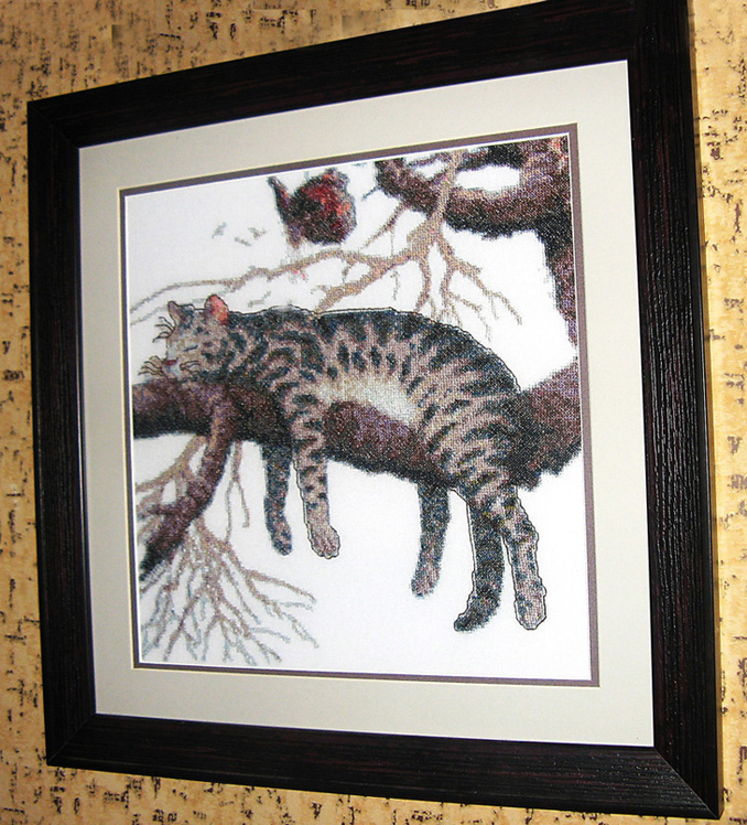 Сross-stitch "Dimensions cat". Сross-stitch "Dimensions cat". Картина вышивалась 4 месяца. Стильный подарок к любому празднику украсит интерьер и будет приносиль позитивные эмоции долгие годы .Картина такого плана вышивается пол года,есть возможность добавления в элементы картины люрекс любых цветов для акцентирования интересных моментов.