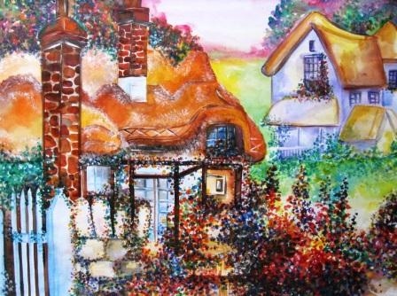 Удивительно теплая, яркая, солнечная картина "Утро в Провансе" выполнена на высококачественной бумаге профессиональными акварельными красками.