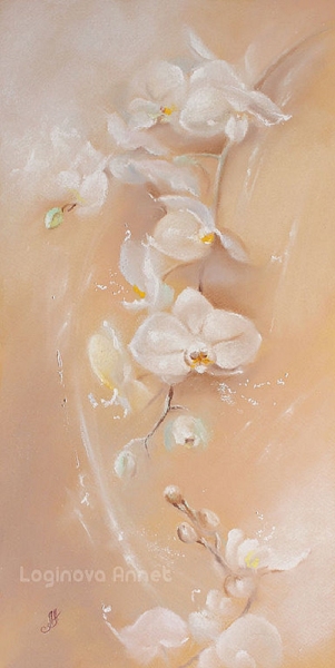 Картина в нежном исполнении, выполнена пастелью на бумаге.