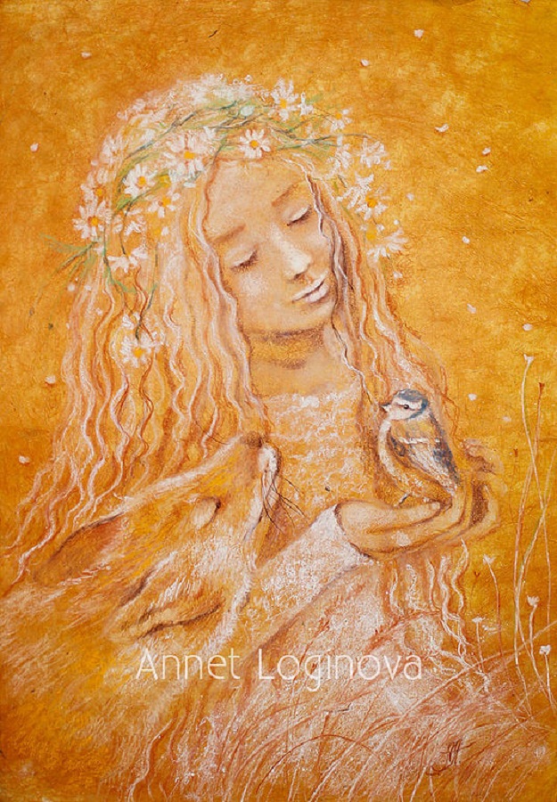 Картина выполнена пастелью на природной бумаге ручной работы янтарных оттенков.