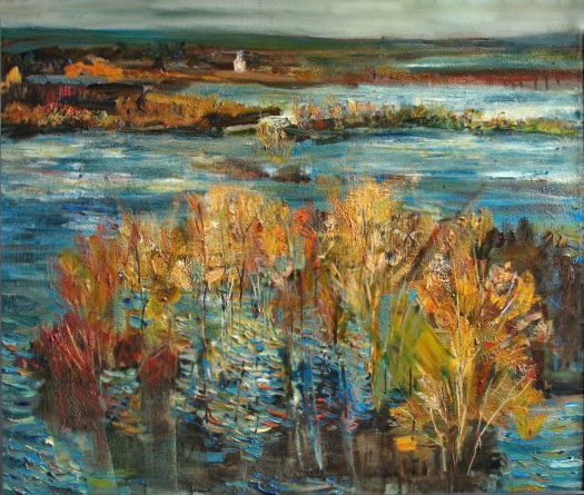 якутск #современное искусство #разлив реки лены #реализм #жуков фёдор # церковь # золото # разлив # осень # art # пейзаж # искусство