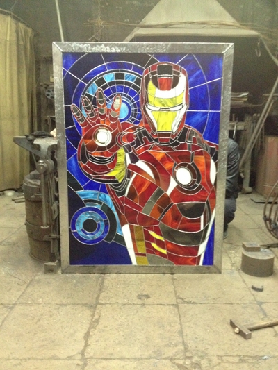 Специально разработанный по мотивам фильма «Iron Man» эскиз, был выполнен художником-дизайнером, а сам витраж был изготовлен опытным мастером-витражистом в единственном экземпляре и теперь по праву может называться поистине достойным внимания произведением искусства.