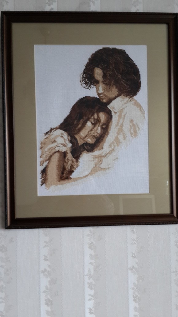 Картина выполнена вручную, техника "Вышивка счетным крестом",в нежно-коричневых тонах, будет украшать вашу спальню.