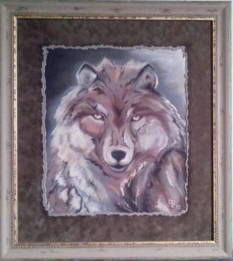 ВОЛК.С паспарту475х537;габариты550х610.Двойное паспарту ручной резки, декорированное.Стекло, багет. Готова к продаже.