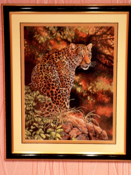 Картина, вышитая гобеленовым швом и счетным крестом, в раме с антибликовым стеклом