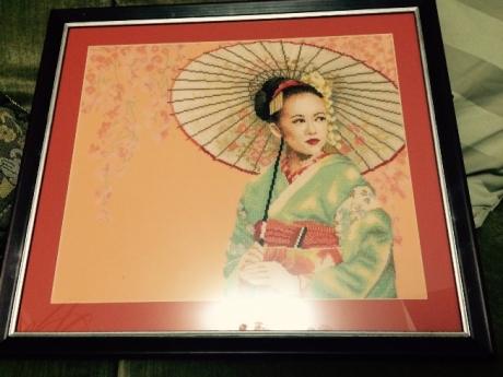 Выполнена в технике счетный крест. Оформлена в раму с паспарту.