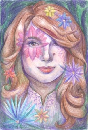 Фантазия, портрет. Бумага, акварельный карандаш.