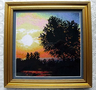 Вышивка крестом, мулине, профессиональный багет со стеклом.