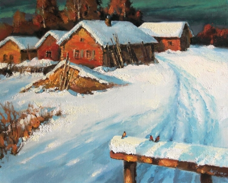Зима в деревне. Снегири