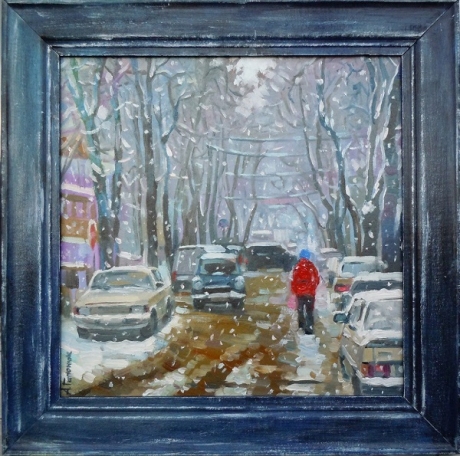 Городской пейзаж одной из центральных улиц столицы Крыма, Симферополя в снежный зимний день.Оформлена в деревянную раму.