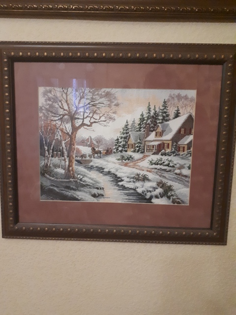 Вышивка по канве. Картина в раме под стеклом.