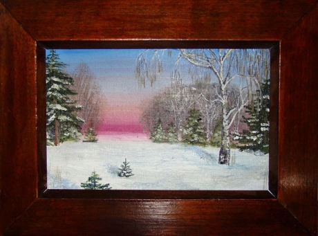 Зимний пейзаж уходящего года. Холст,масло,10х15см.