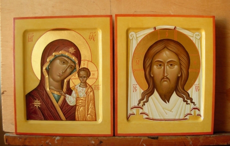 Иконы Богородицы Казанской и Спаса Нерукотворного, венчальная пара.