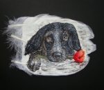 спаниель с цветком,поздравляю...